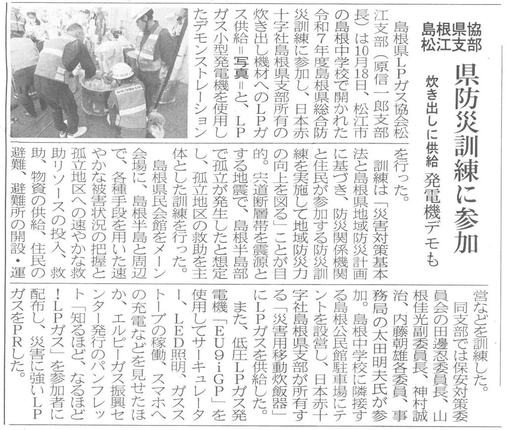 2025年11月17日付の、プロパン・ブタンニュースに「県防災訓練に参加」の記事が掲載されました。