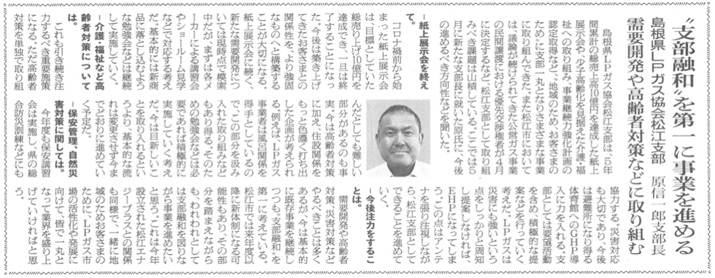 2025年10月6日付の、プロパン新聞に「支部融和を第一に事業を進める」の記事が掲載されました。